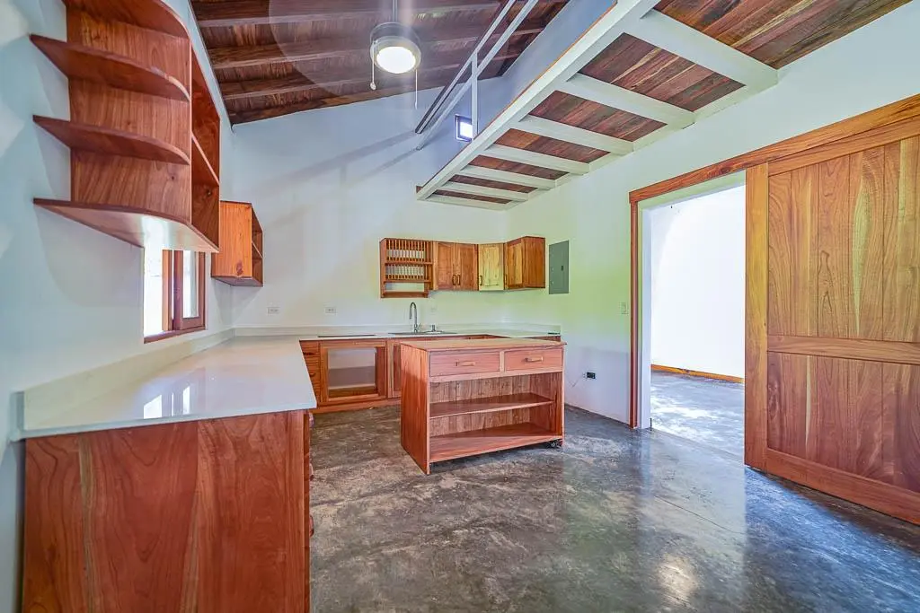 This 2-bedroom, 2-bathroom country cottage in Pedasí, Los Santos was built in 2024 and spans 137 square feet. The home features polished concrete floors, wooden ceiling beams, and a classic tiled roof that blends modern comforts with rustic charm. Natural light floods through ample windows, while handcrafted wooden cabinetry in the kitchen and custom wooden shelving in the bathrooms add authentic character throughout.
